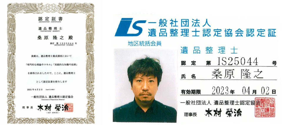 スイレンは遺品整理士認定協会から正式に認定を受けております。