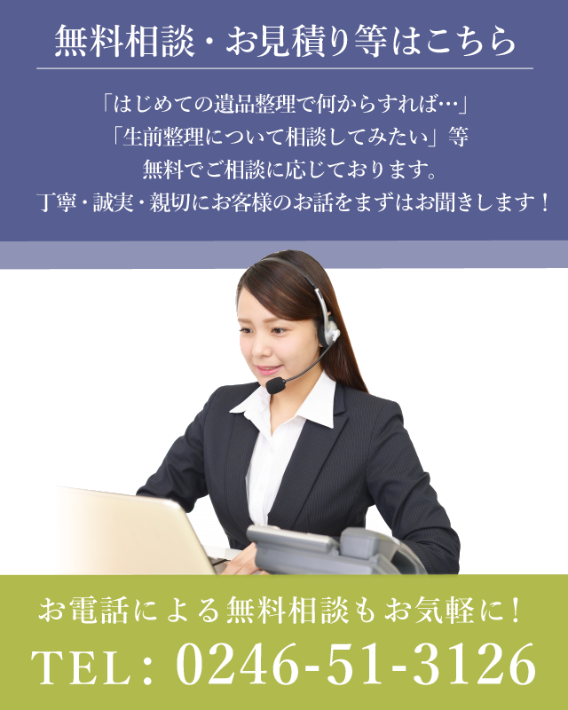 遺品整理や生前整理についてご不明な点がありましたら、お気軽にご相談下さい。